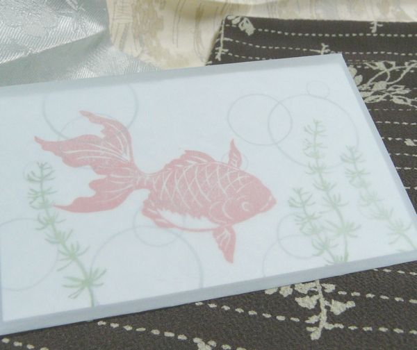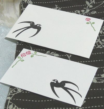 カードと袋、どちらにもツバメとバラがスタンプされています。