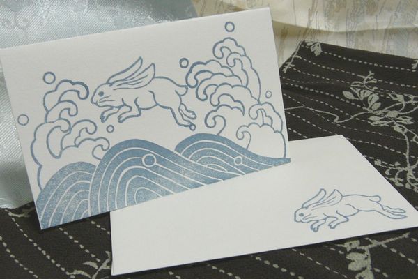 他には、兎は多産であることから繁栄の象徴、また素早く飛び跳ねることから飛躍を意味する縁起の良い動物とされ、更にその兎が”波に乗って”更なる飛躍をするという開運飛躍の想いを込められた象徴、というのもありました。
