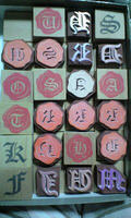ワックスシーリング風なイニシャルはんこと、大きめのイニシャルはんこ。
